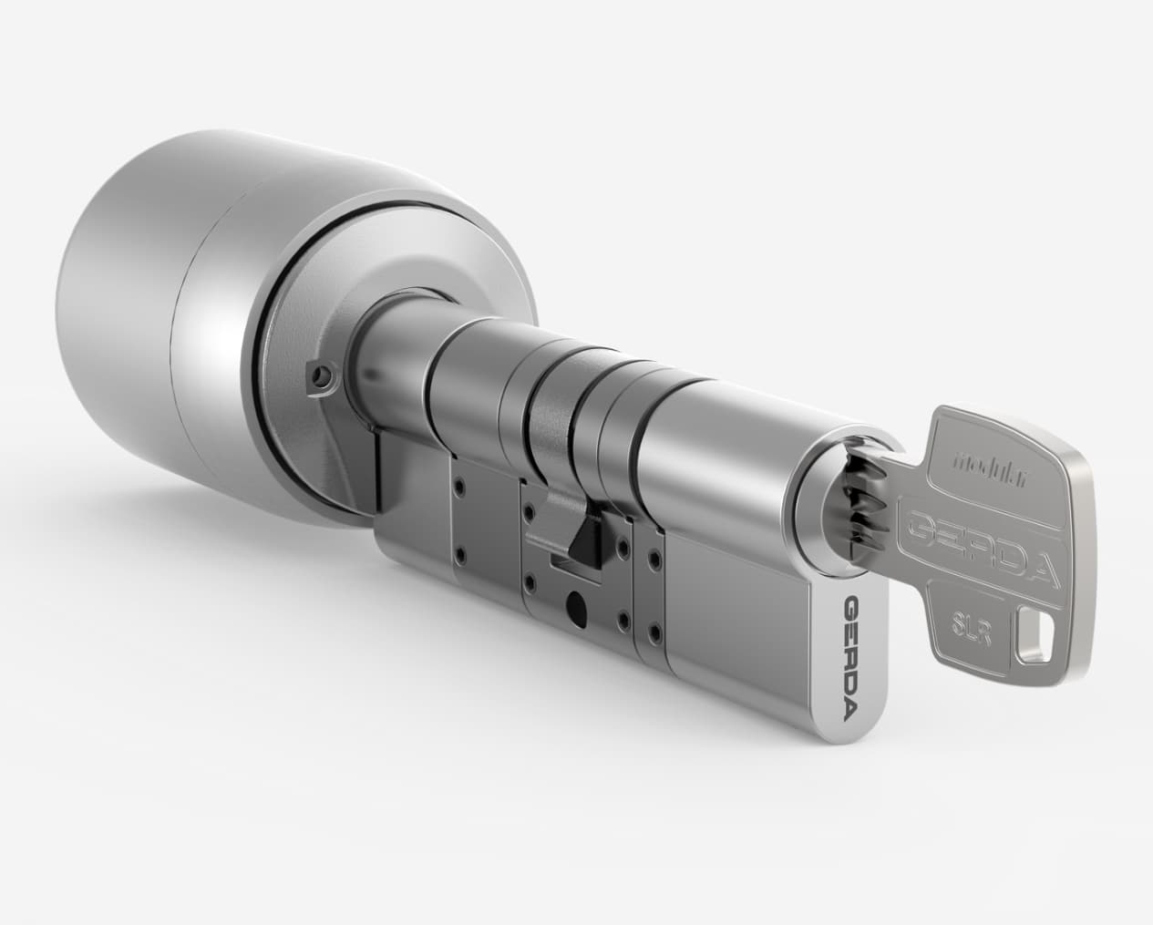 | Drzwi i wkładki | Wymaga wkładki klucz-klucz z bezpiecznym sprzęgłem, możliwe adaptery (skandynawski, amerykański) | Kompatybilny z wkładkami europrofile, rekomendowana wkładka modułowa Gerda SLR |